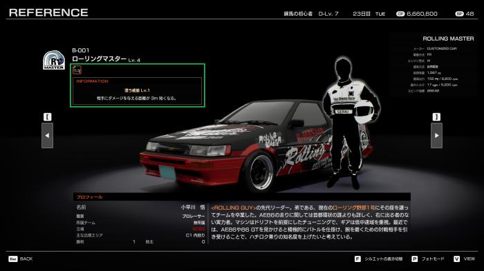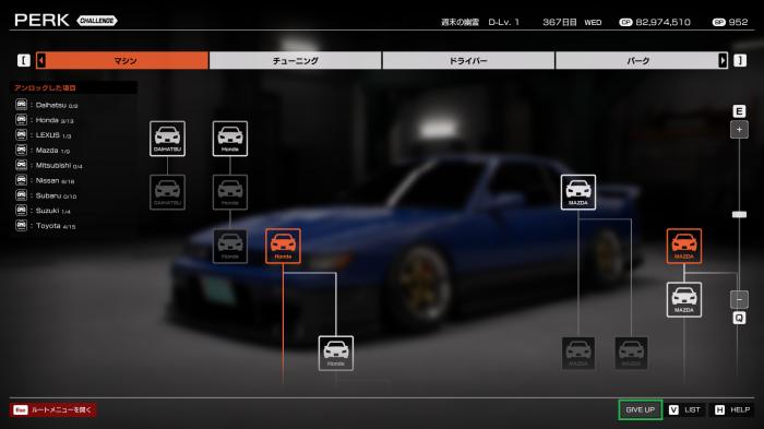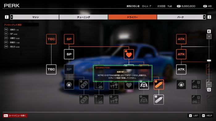 これらは能力強化の項目を解放する事で、恒久的に効果を発揮し、解放した数がドライバーレベルとして計上されます。