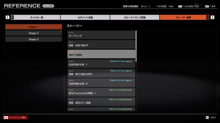 物語の進行によって、登場しなくなるライバルの会話が存在する事から、リファレンス画面に、対象のライバルの会話を確認できる機能を追加しました。