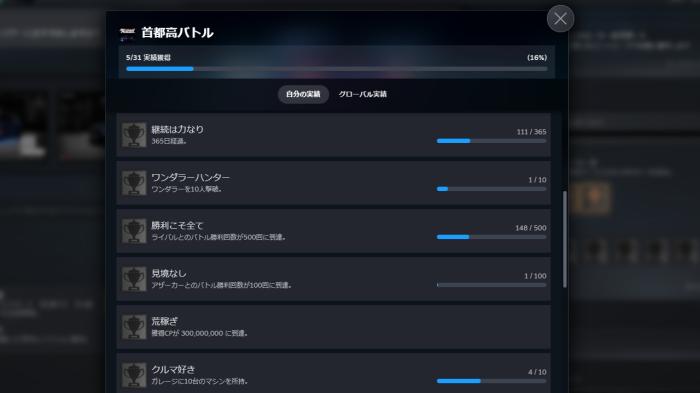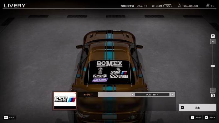 攻略要素ではありませんが、ライバルから獲得したオーラを自身の車両に着ける事ができます。