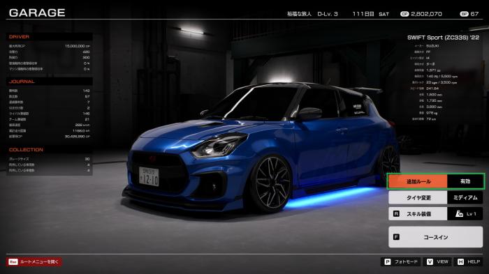 スキルは、ガレージ画面で装備すると効果を発揮します。