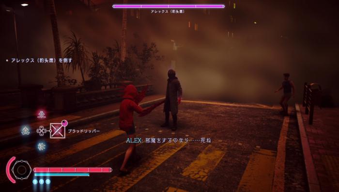 アレックスも憑依を使って死角から攻撃してきます。紫色のオーラが消えているばあいは他の宿主に移っている状態なので回避しましょう。