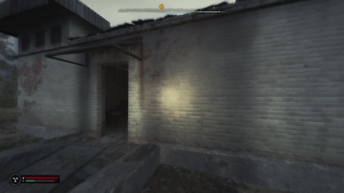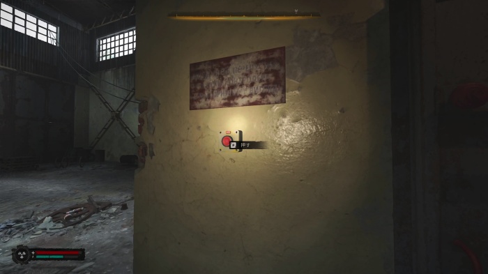 フィールドを進み建物に入ります。「L」で懐中電灯をつけることができます。ゲーム画面が暗い場合は設定のディスプレイから「明るさ」をあげましょう。