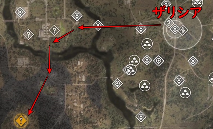 目標地点のザリシアに向かいましょう。道中の敵兵士はスルーできますが、物資を集めたいなら倒しましょう。