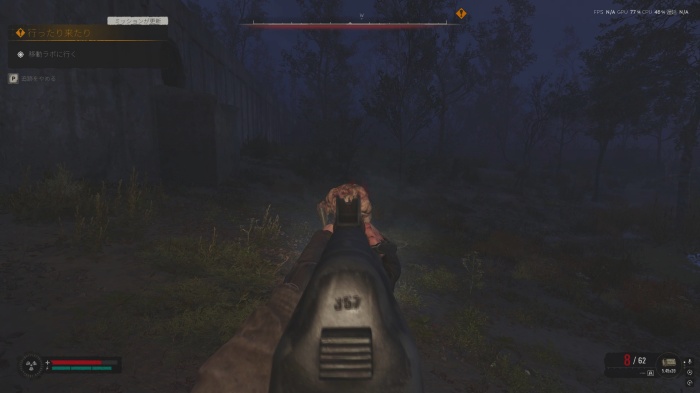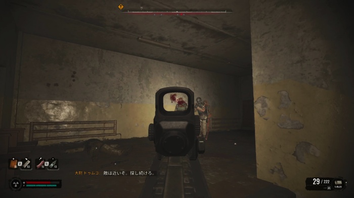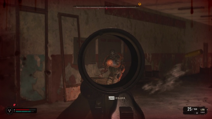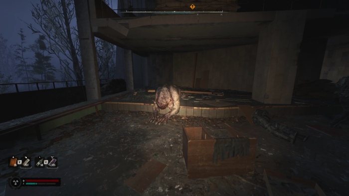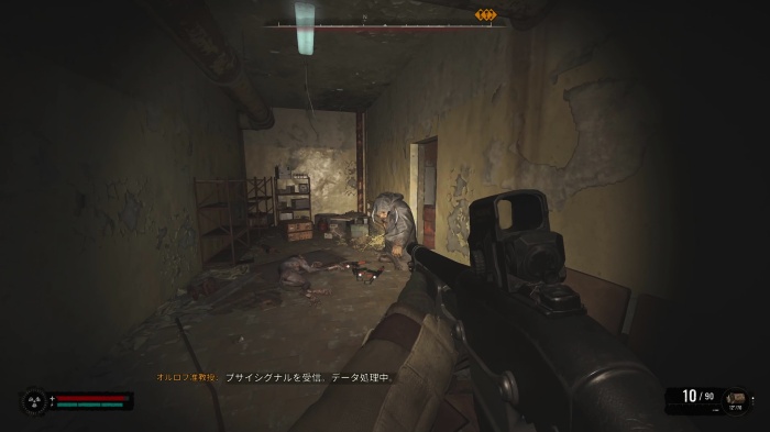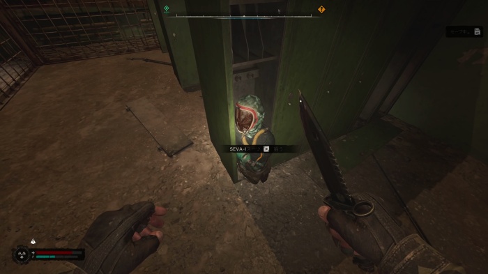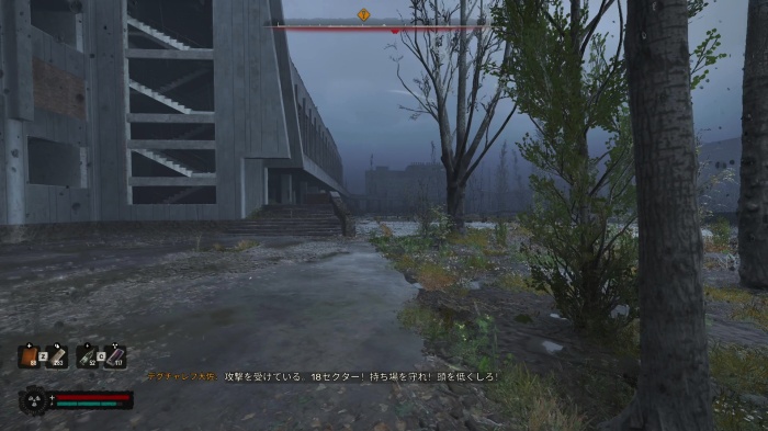 アーティファクトを入手するとミュータントが出現します。近くに来ると透明状態が解除されます。距離をとりながら戦うかラボの中から近づいてくるところを狙い撃ちにしましょう。出血した場合は包帯を使えば出血を止めることができます。