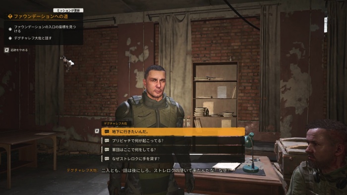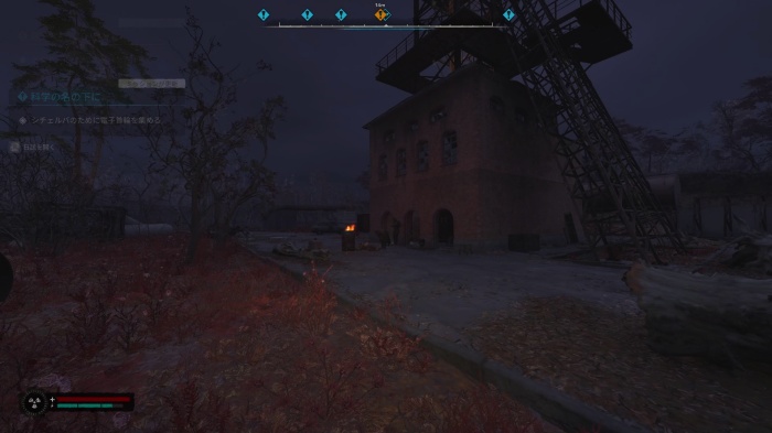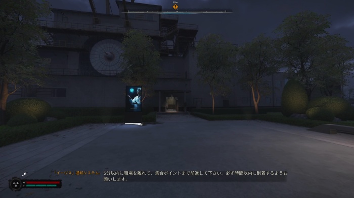 アノマリーフィールドから出るとリヒターと会話ができます。リヒターに話しかけると近くの施設まで一緒に進むことができます。