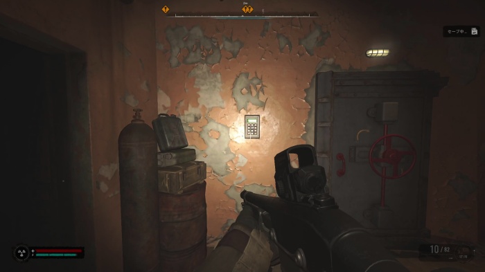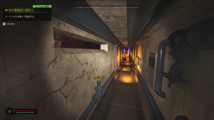敵を倒しながら先に進みます。途中で新品の武器やスーツが置いてあります。耐久が減っている場合は交換しておきましょう。