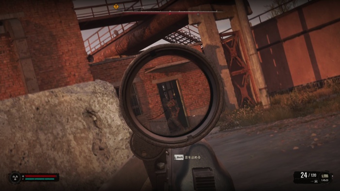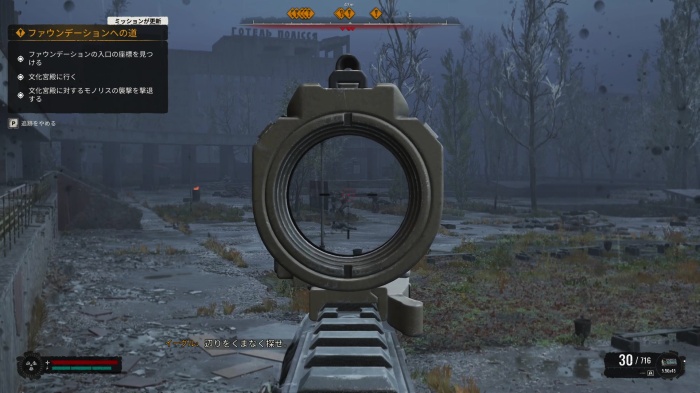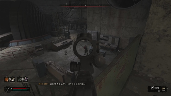 下水道トンネルの外に出るとミュータントがいるので先ほど拾った「AKM-74u」を使って倒しましょう。