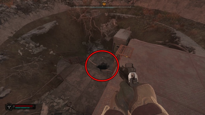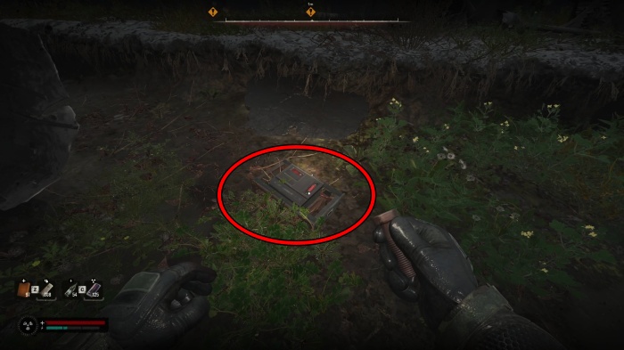 外に出たら「7」で検出器を取り出し、黄色くなっているエリアで「スラグ」を入手します。