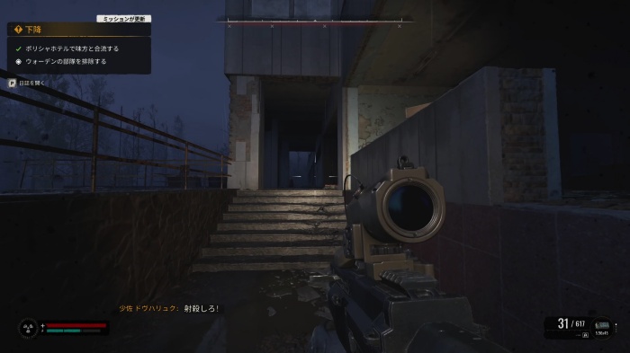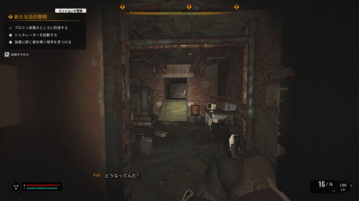 ボイラー小屋を制圧してグルーミーを助けると報酬がもらえます。また、近くの棚には「バイパー5」や弾、飲食品、埋蔵物からは「ピストルサプレッサー」を入手できます。