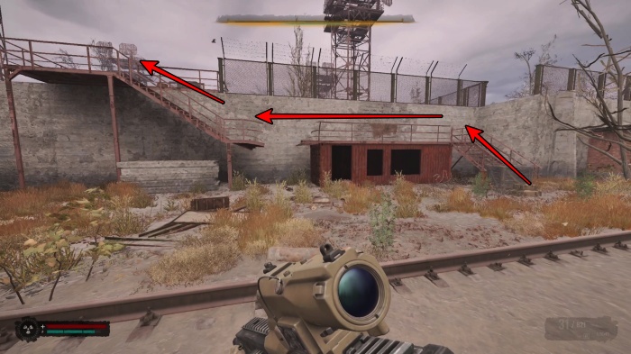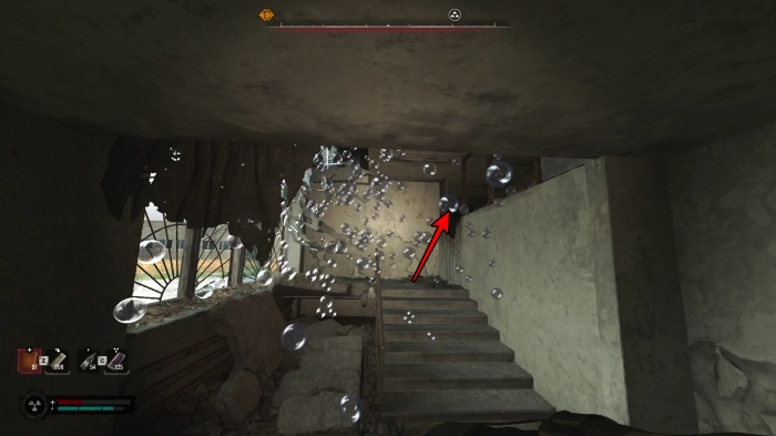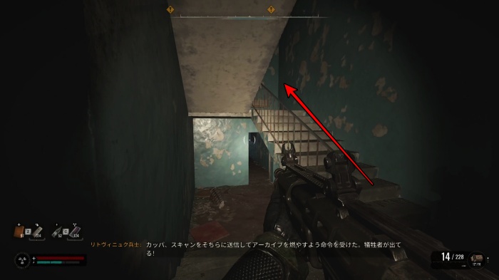 空間アノマリーが配置されているエリアを右に進み階段を上ります。