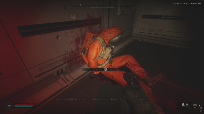 ラボを進むとネホダ博士の遺体を見つけましょう。遺体を探ってPDAを入手します。