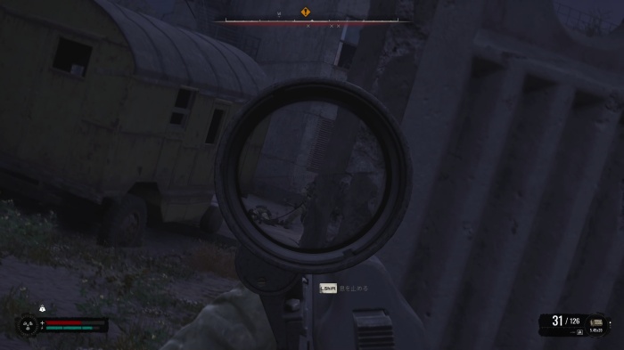 チョルノーゼムとの会話の選択肢で「バルコニーに進む」ように進言すれば、スナイパーが彼を狙撃してくれます。その後、倉庫に残ったチョルノーゼムの部下たちをせん滅しましょう。