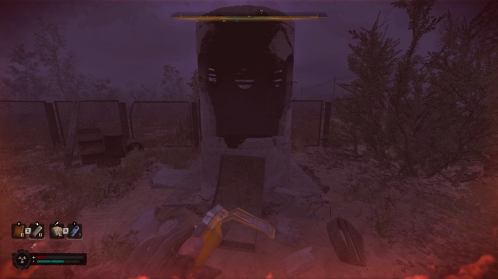 作業場の扉はカードキーがないと開けることができません。コンクリートの円筒から飛び降りて作業場に向かいます。近くには爆発するアノマリーが出現するので、素早く下に降りましょう。