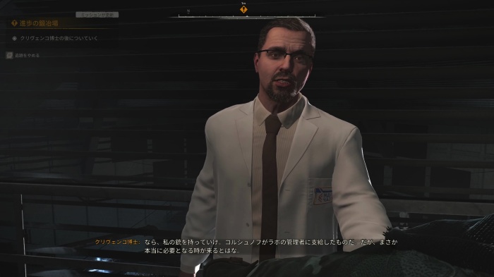 ラボに入るとクリヴェンコ博士がいるので会話後、彼についていきます。ついていったら話しかけて「ギャンビット」をもらいましょう。