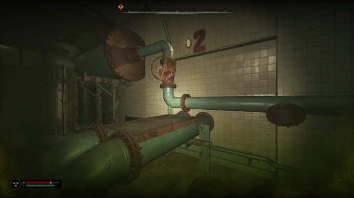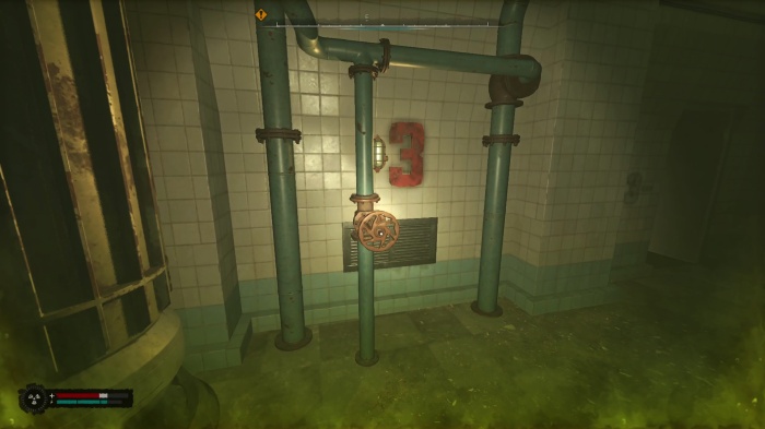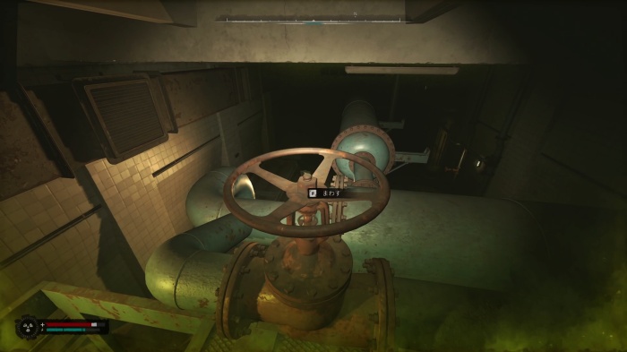 次の部屋は部屋にガスが充満しており、3つのバルブを順番に回しましょう。