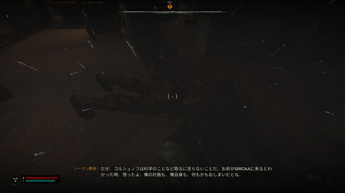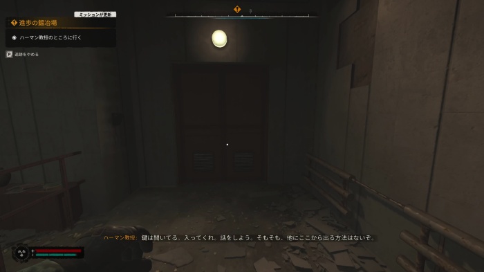 右側の扉が開くので先に進みます。さらに進むとまた扉があり、錠がかかっているのでナイフで破壊してハーマン教授のところに行きましょう。
