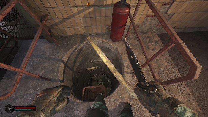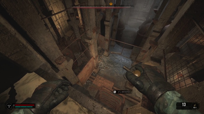 次のハシゴを降りた迷路のようなエリアには大量のネズミが出現するので、ハシゴの上からグレネードで一掃しましょう。
