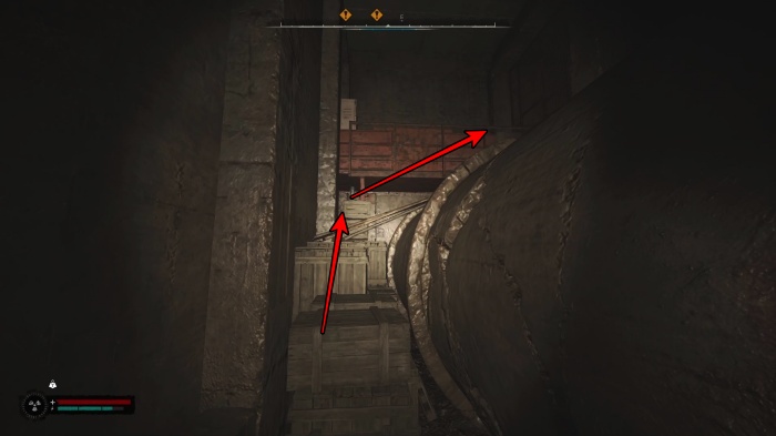 後ろを振り向いてジャンプします。あとは道なりに進むとフューズをはめる電源パネルがあります。