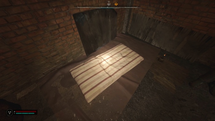 近くにある布団で休みます。この時近くに敵がいると寝ることができません。来る途中にblood suckerと遭遇した場合は一度外に出て倒すと休むことができます。