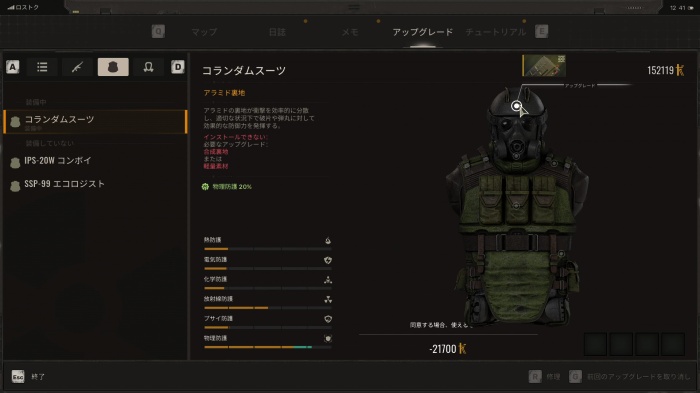 ロストクにいる技術者に話しかけ、アップグレードを選択します。装備しているスーツまたはマスクに「サプレッサー」を取り付けましょう。取り付けたらミッションクリアです。