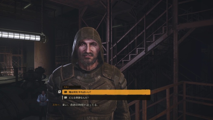 下水道からハシゴを上り、スカーと合流し会話したらミッションクリアです。