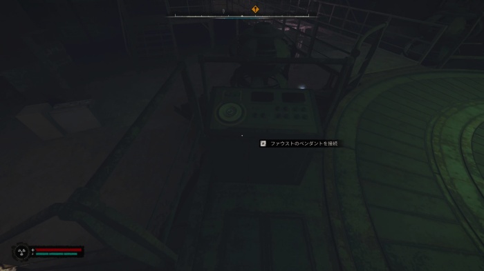 スカーとの会話が終わったらファウストのペンダントをヴィジオグラフの制御パネルに接続します。