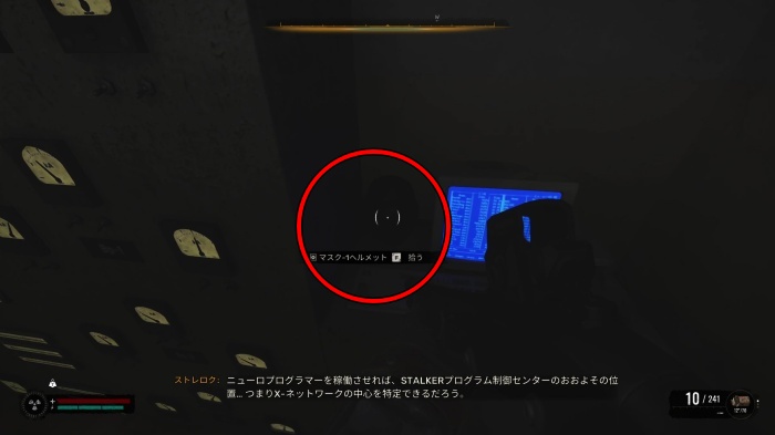 中には兵士がいるので倒しながら進みます。狭い小部屋の奥に「マスク-1ヘルメット」があるので回収しておきましょう。