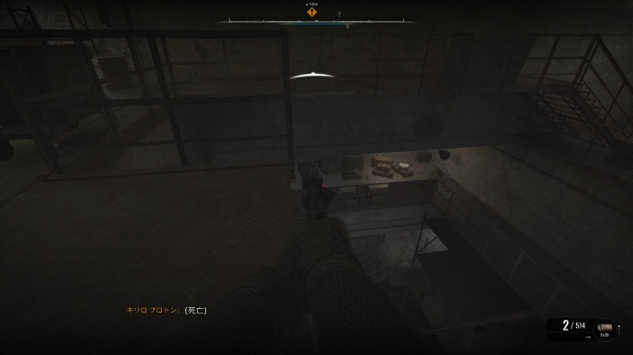 空間アノマリーが配置されているエリアを右に進み階段を上ります。