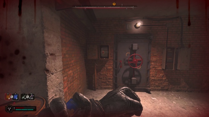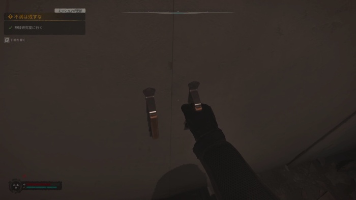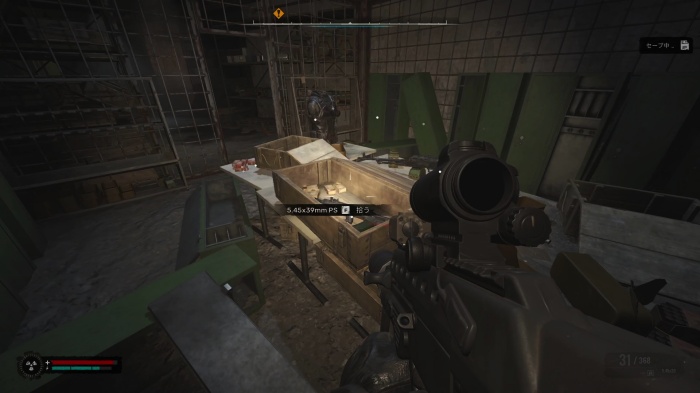 敵を倒しながら先に進みます。途中で新品の武器やスーツが置いてあります。耐久が減っている場合は交換しておきましょう。