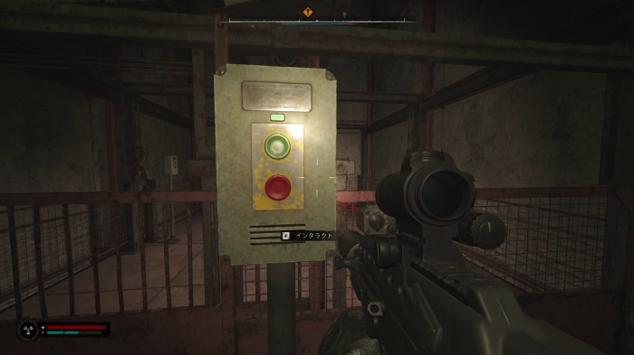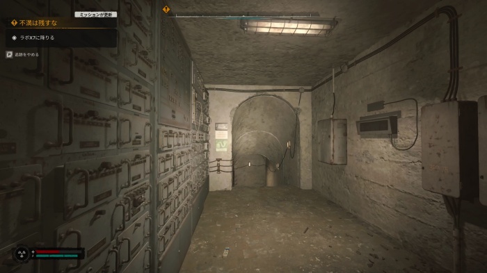 エレベーターを降りたらモノリサーが出現する部屋に向かいます。スイッチを押して次の部屋に向かいます。