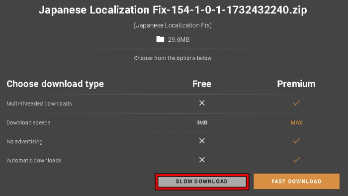 「SLOW DOWNLORD」をクリックするとmodのダウンロードが始まります。