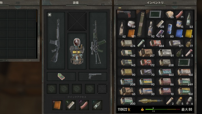 | No (or reduced) weight for ammo nades meds and food | 弾薬、グレネード、医薬品、食料の重量がゼロまたは減少 |