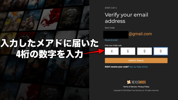 メールアドレスを入力すると入力したメールアドレスに4桁の数字が届きます。