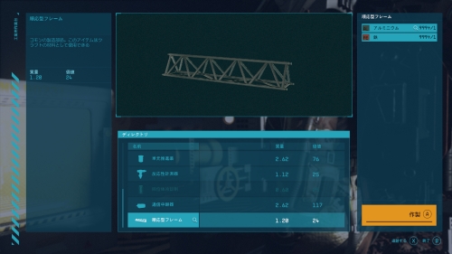 次の画面では選択したカテゴリ内の研究可能なプロジェクト一覧と、それぞれに必要な材料が表示されます。