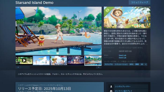 スターサンドアイランド(星砂島物語)の体験版は、2025年10月13日(月)に配信予定です。