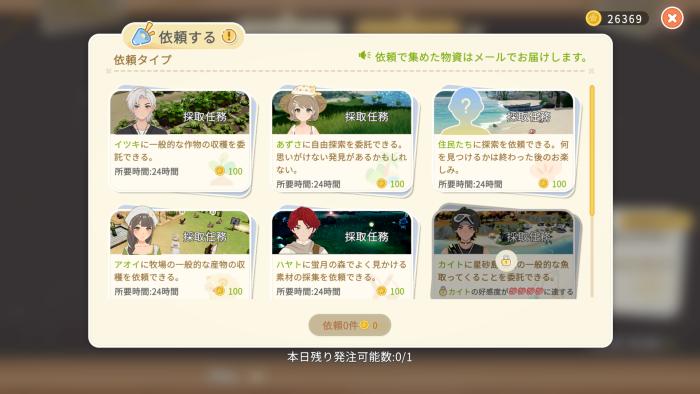 - 依頼をお願いできるのは、好感度が♥4のキャラのみ