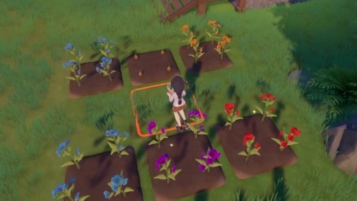 畑に同じ種類の花を植える際に真ん中に1マス空くと、両方の花が成熟したときに、一定の確率でハイブリッド花が生まれます。