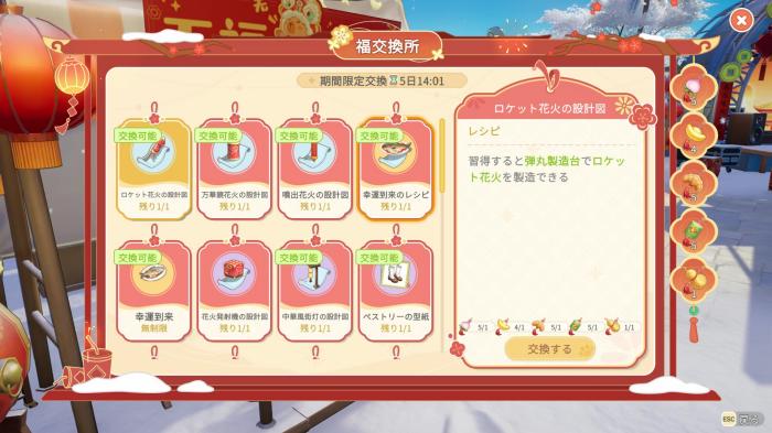 春節期間中に福交換所で福と引き換えにアイテムを交換しておきましょう。