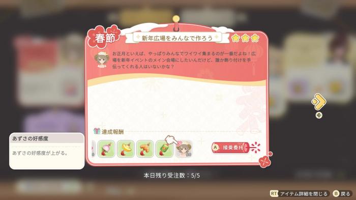 春節の期間になると、あずさの依頼イベント「新年広場をみんなで作ろう」が発生します。