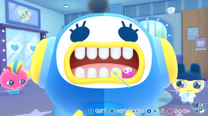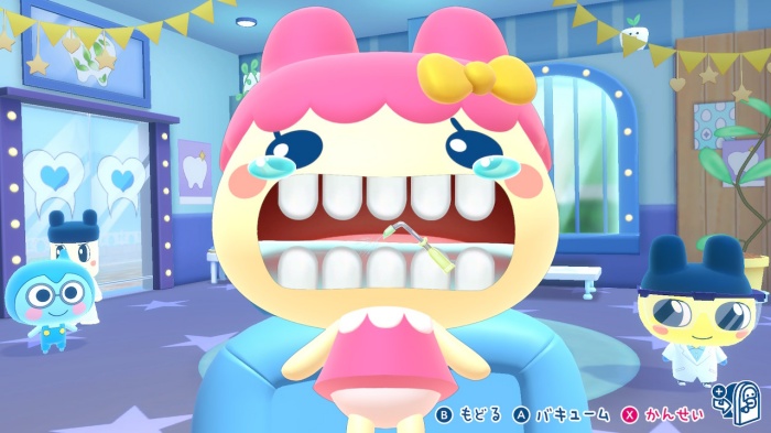 虫歯の歯にはドリルを使って使って穴を開けましょう。痛くて泣いている時は注射マークを選んで、麻酔をしてあげましょう。