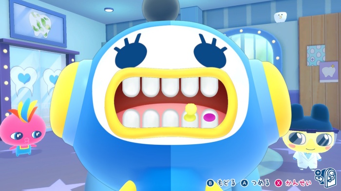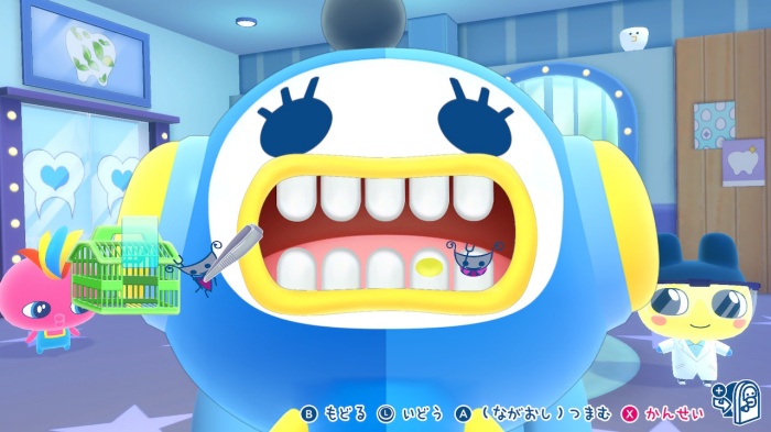 虫歯をピンセットで引き抜いて左側にある虫籠の中に入れましょう。