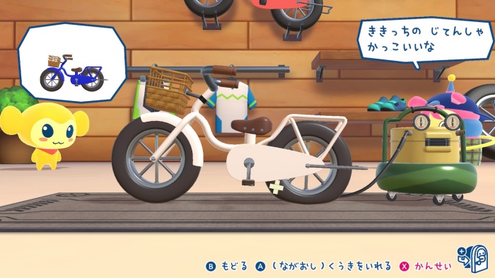 パンクしたタイヤの穴を塞いだら空気入れを選んで、Aボタン長押しで空気を入れましょう。
