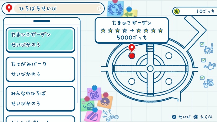 クリア後のやり込み要素の一つとして4ヶ所の広場を全て最大まで強化しましょう。星3から星4にするには5000ごっちかかるため、すぐにはできませんが、様々なお店を楽しみながら少しずつ貯めていきましょう。