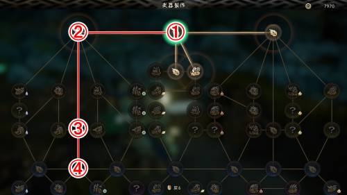 | ⑥此岸の機傘 | 475 | - | 0% | 固有:納刀術50% 固有:好戦・攻10% 継承:鷹の目5% |