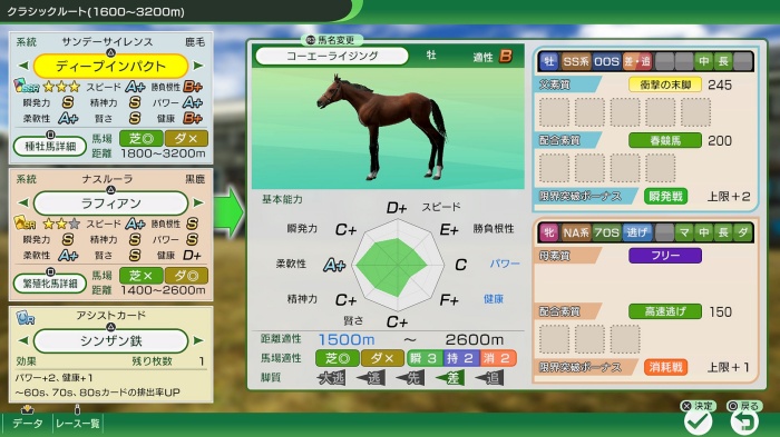 本作からは史実調教や牧場施設を元にした「育成アシストカード」が新たに追加された。