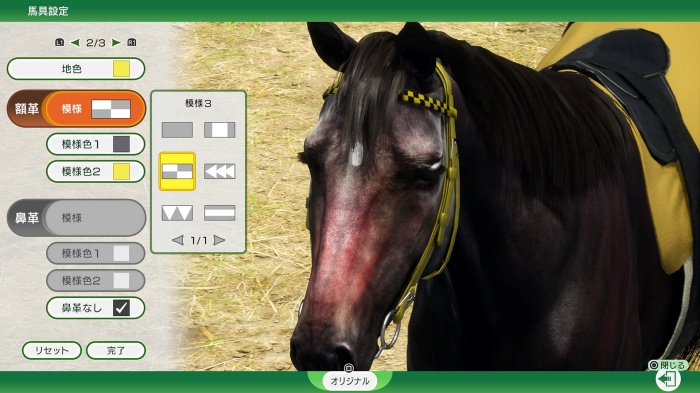 額革や鼻革など、多様な柄や色彩の馬具を設定できるようになった。