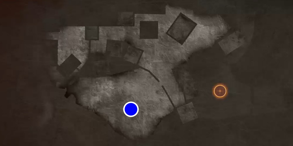 右側にある壊れた壁から裏に回り、鍵を入手する。